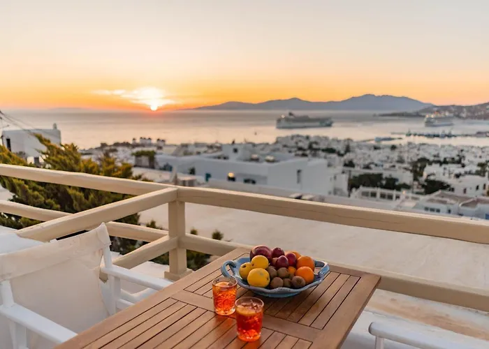 Este hotel de Mykonos Town apresenta 28 quartos com varanda e terraço, mobiliados com escrivaninha. Wi-Fi gratuito e TV de tela plana com canais via satélite, assim como confortos como o ferro e tábua de passar, controle de temperatura, são apresentados. Eles vêm com casa de banho separada e chuveiro, juntamente com comodidades como secador de cabelo e toalhas.